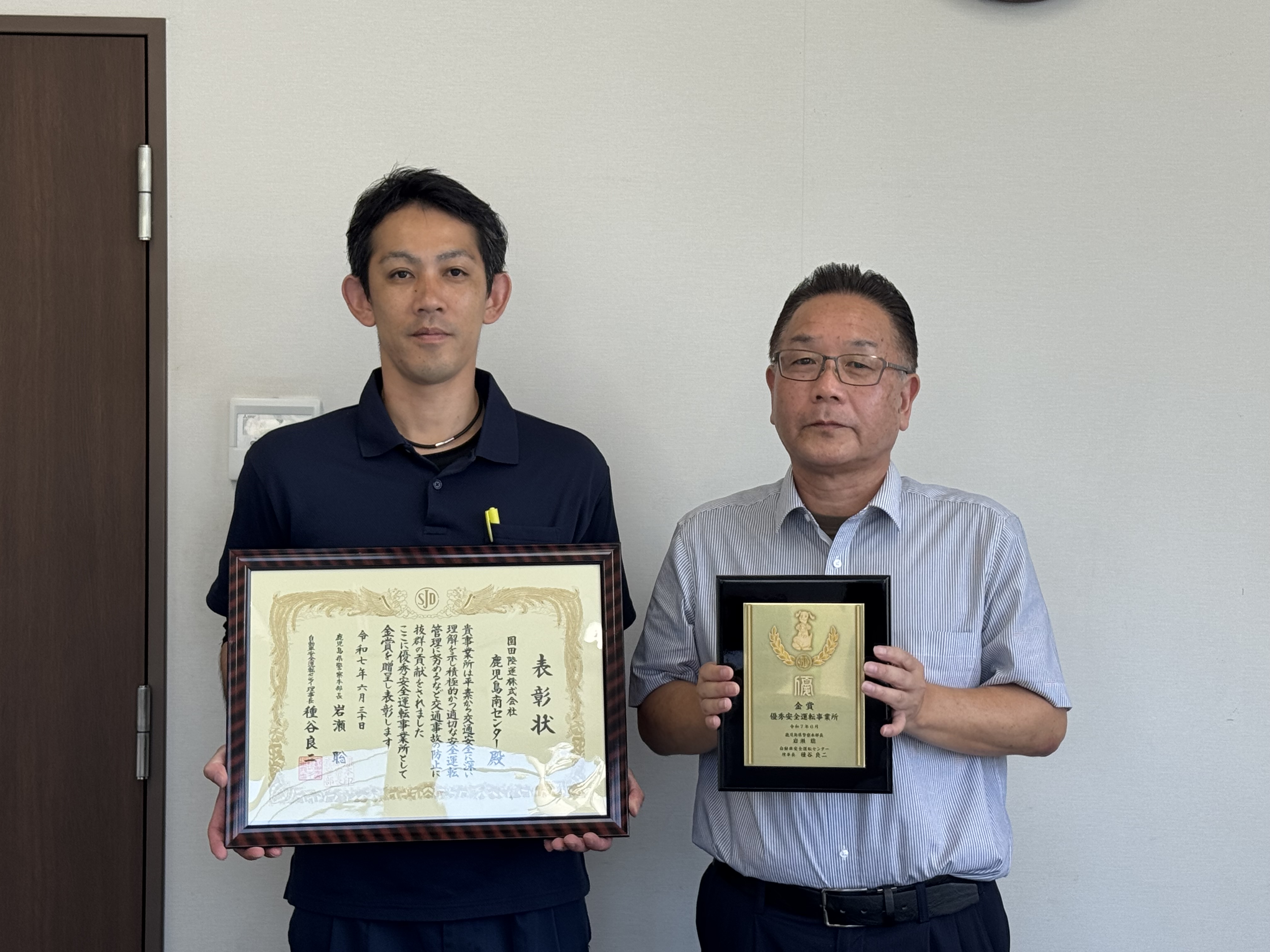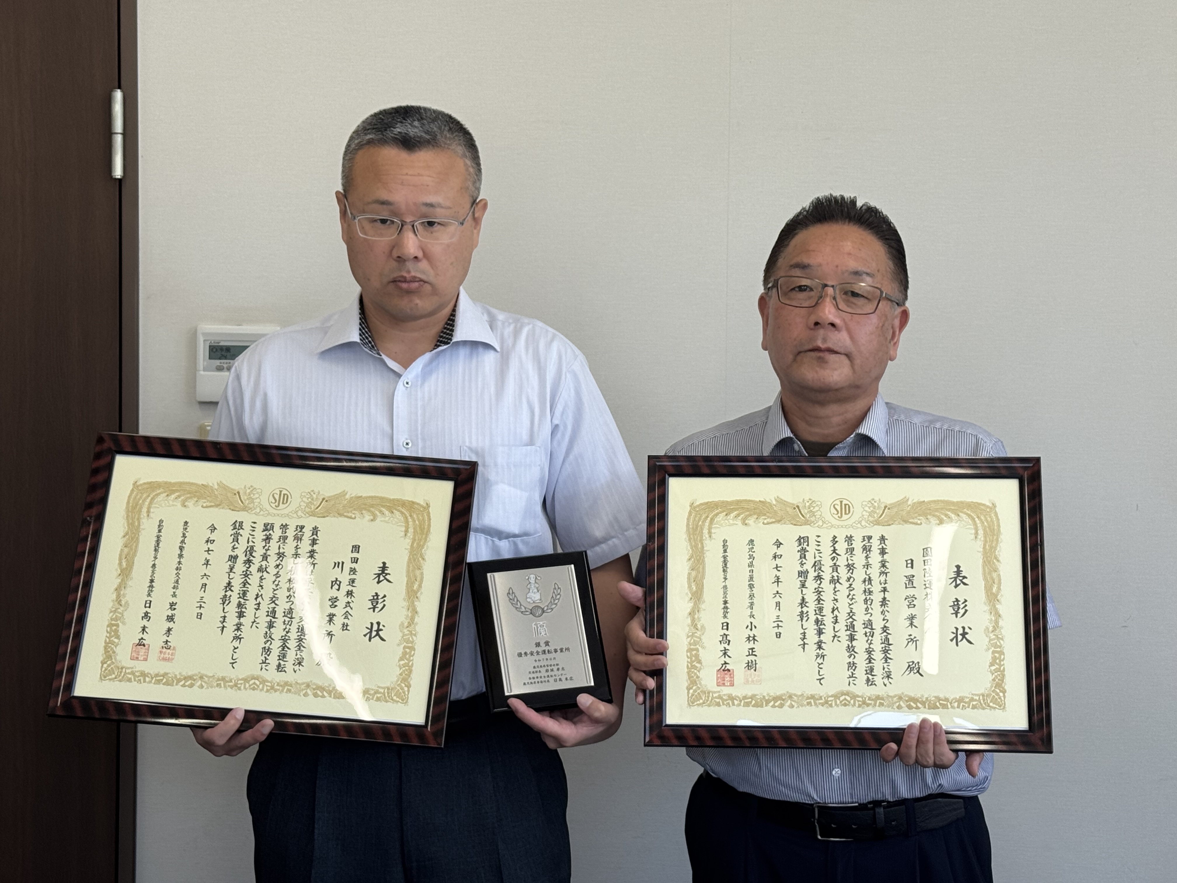 この度、自動車安全運転センター鹿児島県事務所より、職場全体で安全運転および交通事故防止に取り組んでいることが認められ「令和7年第一期優秀安全運転事業所表彰」を3事業所が受賞いたしました。